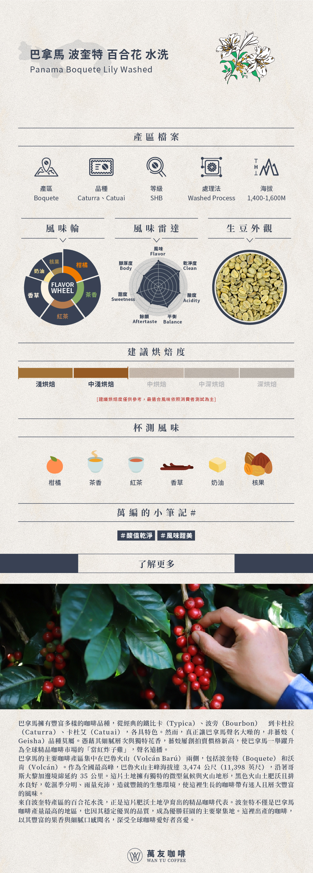 柑橘、茶香、紅茶、香草、奶油、核果,酸質乾淨,風味甜美